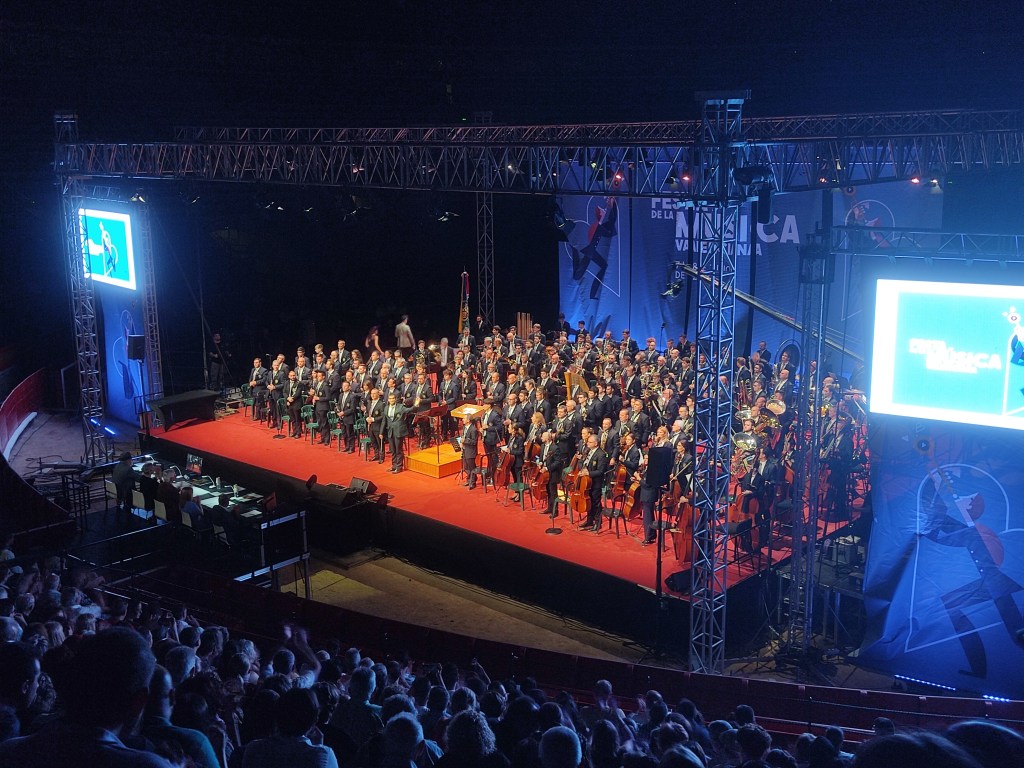 La Banda de la Societat Musical Instructiva Santa Cecília de Cullera, i el seu director, Carlos Garcés.