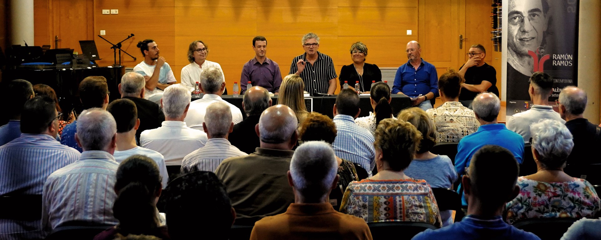 La presentació va donar pas a un debat, Ramón Ramos, vida i obra musical moderat per Josep Lluís Galiana, músic, improvisador, editor i escriptor, en què van participar Héctor Oltra, director artístic de les Jornades de Música Contemporània Ramón Ramos; Ainoha González; Carles Ramos, fill del compositor; Voro García, director del Festival Ensems i compositor; Sixto Herrero, saxofonista, compositor i director; i Gregorio Jiménez, catedràtic de Composició Electroacústica al Conservatori Superior de Música de València.