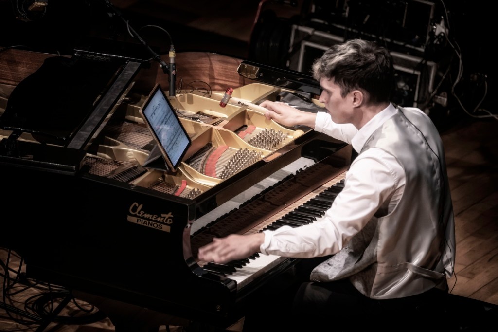 La primera peça que conforma la trilogia, Key of Presence, proposa un joc de ressonàncies a través dels diferents timbres que es poden obtindre d’un piano amb amplificació i tractament electrònic del so. Els efectes de pregunta-resposta entre els dos pianos són recurrents en este moviment, i crida l’atenció el contrapunt percussiu generat pels micròfons de contacte que ambdós intèrprets tenen adherits al pit. Francisco Martí i Carolina Santiago interpretaren de manera brillant esta successió de fenòmens tímbrics que transcendixen al piano com a instrument, i transporten el so i la música cap a una nova dimensió espacial, tant a l’hora de la interpretació, com a l’hora de l’escolta. La sincronia i complicitat en cadascun dels moviments d’ambdós intèrprets va ser excel·lent, aconseguint un resultat realment colpidor en esta primera part de l’obra de Muntendorf.