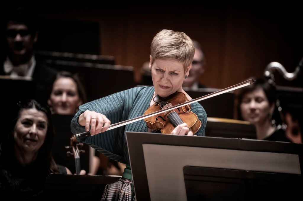 Ja des de l’inici es va poder constatar la sensibilitat i destresa de la violinista alemanya amb la partitura ligetiana. Amb un primer moviment excitant, Liebreich va saber extraure en cada moment les línies i els impulsos sonors de cada un dels intèrprets de l’orquestra, de manera que, junt amb la part solista de Faust, es va crear a la Sala Iturbi un garbuix d’espasmes perfectament planificats. El segon moviment va suposar la constatació de la genialitat d’Isabelle Faust amb esta partitura. L’inici corre a càrrec del violí solista, desenvolupant una melodia procedent del No. 7 de la Música Ricercata del propi Ligeti, que prompte rep a la resta de l’orquestra en un moviment on les reminiscències a la música renaixentista es fan paleses. De fet, tot el concert en sí mateixa és una compendi d’estils i textures diferents entre sí, combinant Ligeti les influències de la música folklòrica hongaresa amb l’estil contrapuntístic arcaic, mentre la microtonalitat i la micropolifonia fan acte de presència. Pot ser es tracte d’una partitura on es mostre una major quantitat de tècniques i recursos propis de la música de Ligeti. I tot i l’elegància i la destresa mostrada en els primers moviments, és en els tres restants on qui escriu estes línies va trobar la vertadera connexió entre orquestra, director, solista i públic assistent. Amb l’Intermezzo es va viure la gran fusió tímbrica que Ligeti planteja a la partitura, que Liebreich va saber construir a poc a poc entre tots els instruments presents. La Passacaglia va tornar a recollir l’atmosfera creada prèviament, amb una Isabelle Faust extremadament sensible a l’hora d’abordar els passatges més delicats de la partitura. Finalment, l’Appassionato obria amb eixe motum perpetuum d’inspiració minimalista, i va acabar d’arrodonir una interpretació fantàstica de l’exigent Concert per a Violí i Orquestra de György Ligeti. El públic va aplaudir fervorosament a la gran solista Isabelle Faust, que va haver d’eixir a saludar en tres ocasions, regalant un bis en l’última d’elles. Una molt bona manera d’acabar l’any 2023, any de celebració del centenari de György Ligeti.
