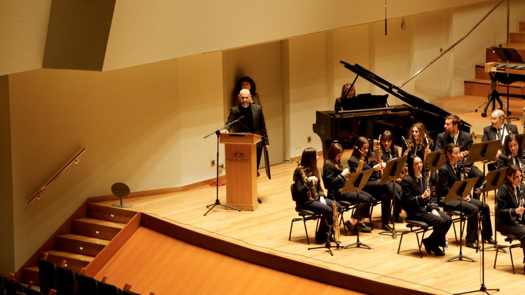 El passat diumenge al Palau de la Música de València s’iniciava el concert programat per l’Agrupació Musical Santa Cecília de Castalla. Un concert amb una gran càrrega emotiva i un repertori amb diversitat de propostes compositives que anaren des de l’espacialitat al virtuosisme.