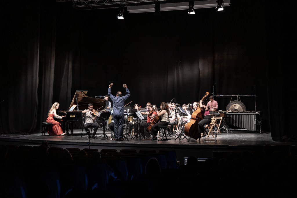 Al segundo alumno de composición, Bernat Cucarella, se le estrenaba seguidamente su obra Elenita beneath the beach, también presentada al premio de composición del CSMV. La propuesta de Cucarella parte de una idea dada, los 3 primeros acordes de la Sonata “Les adieux” de Beethoven, creando un discurso contundente lleno de polifonía. Con tres capas tímbricas diferenciadas y organizadas por familia instrumental: cuerda, viento y percusión; combina gran variedad de técnicas extendidas y enfatiza motivos rítmicos y gestuales con maestría. Por supuesto, ante tal obra, el director Voro García y su agrupación, consiguen un resultado que roza la perfección.