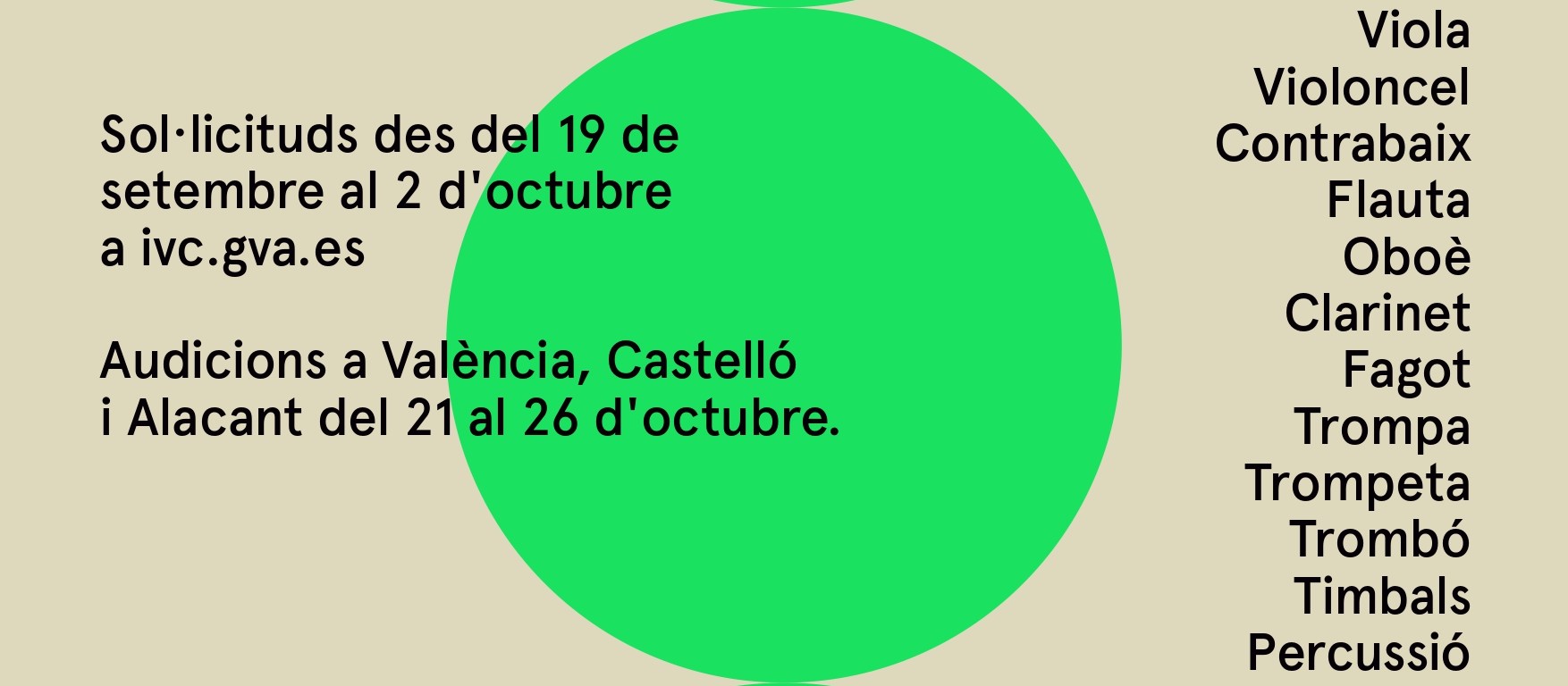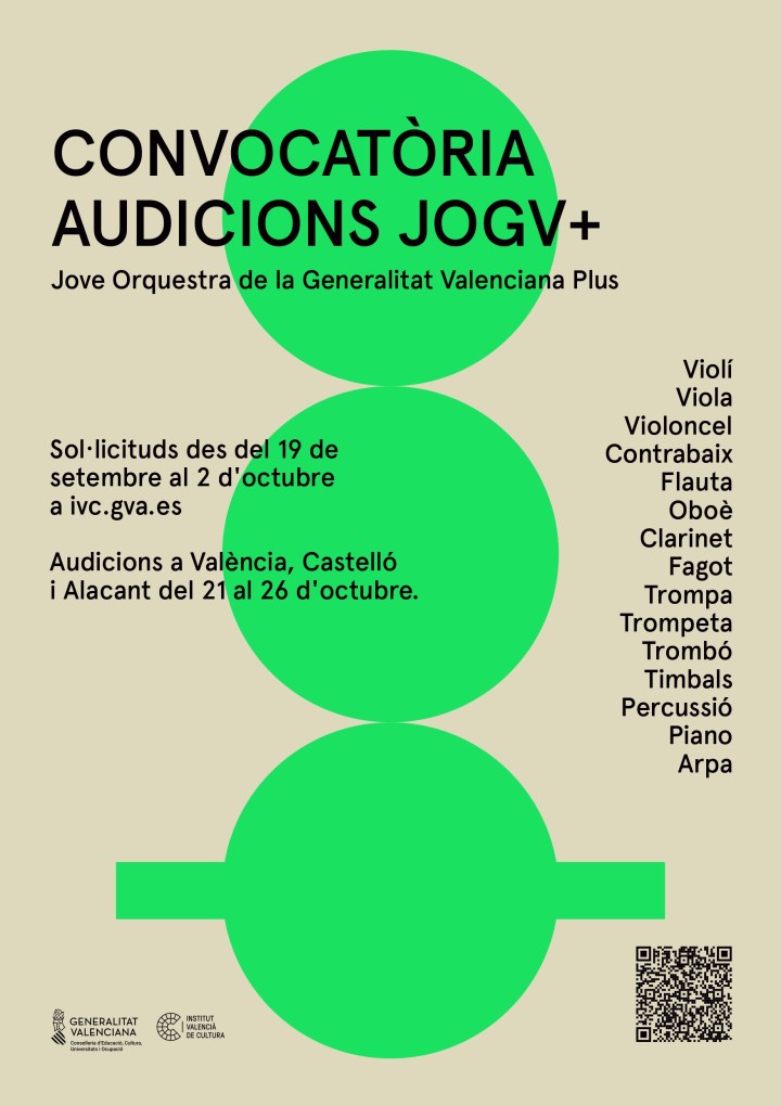 L’Institut Valencià de Cultura convoca les proves selectives per a 51 llocs de músics d’orquestra per la nova JOGV+ (Jove Orquestra de la Generalitat Plus), que participaran en les produccions líriques de la temporada 2024-2025.