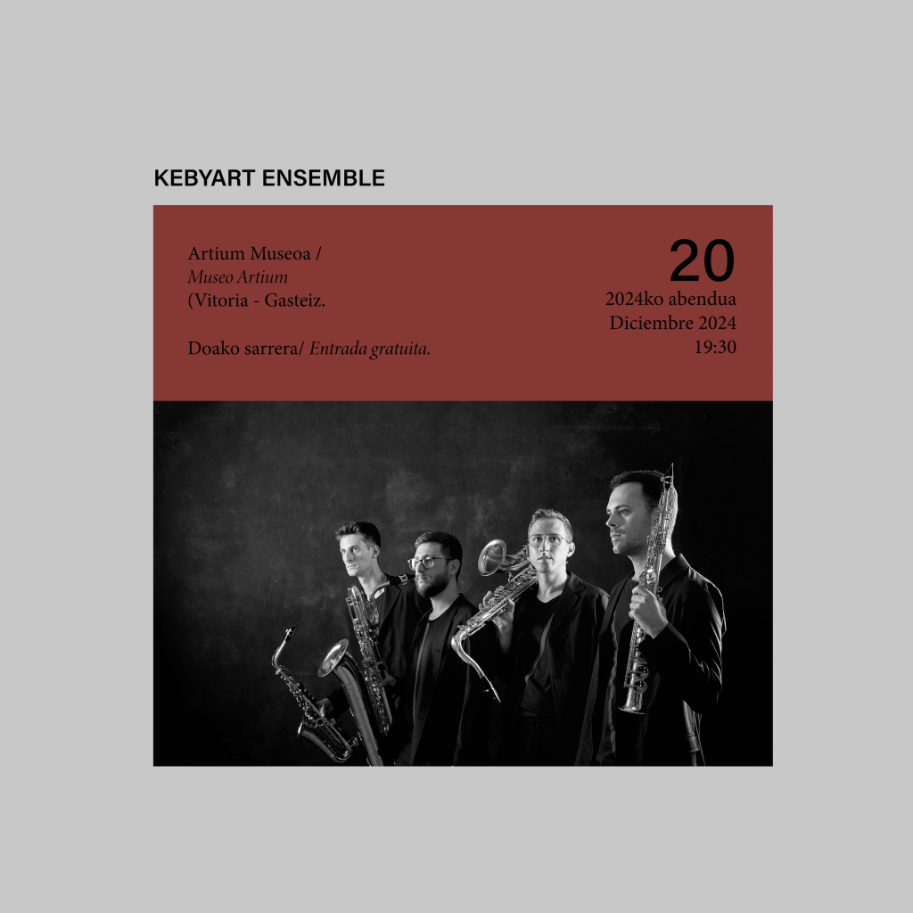 El próximo viernes, 20 de diciembre de 2024, a las 19:30 horas, el Museo de Arte Contemporáneo del País Vasco, Artium Museoa de Vitoria-Gasteiz será el escenario de un concierto especial dentro del XV Circuito de Música Contemporánea Musikagileak, con la participación del Kebyart Ensemble, un cuarteto de saxofones de origen catalán que ha ganado reconocimiento internacional por su enfoque innovador y su versatilidad interpretativa.