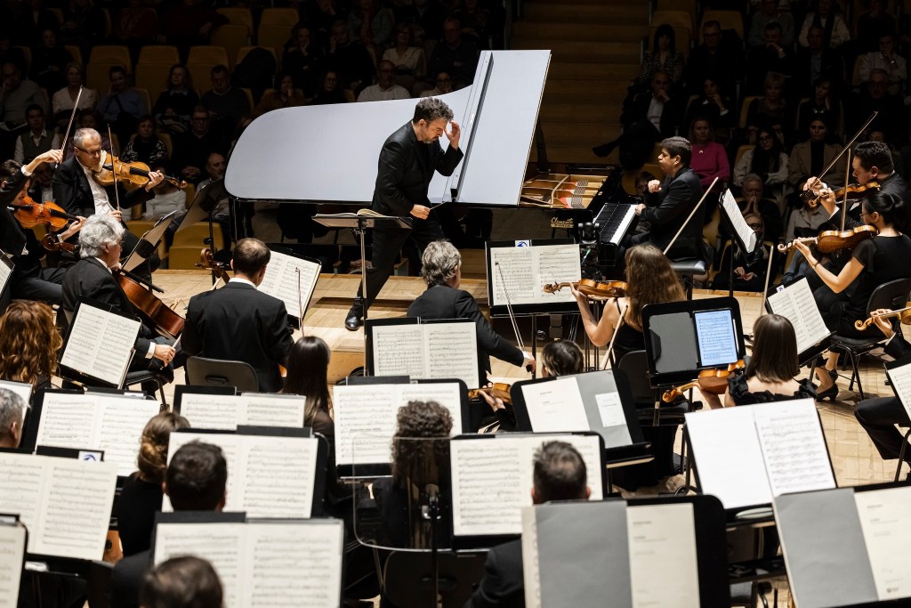 El concert, amb gairebé 2 hores de durada i sense programa de mà on poder consultar les notes al programa, va començar amb Le Chasseur maudit, un poema simfònic compost per César Franck, on la secció de trompes va ser destacada i l’orquestra va fer un ús notable de la subtilesa per interpretar les extremes dinàmiques que Franck va escriure a la partitura.