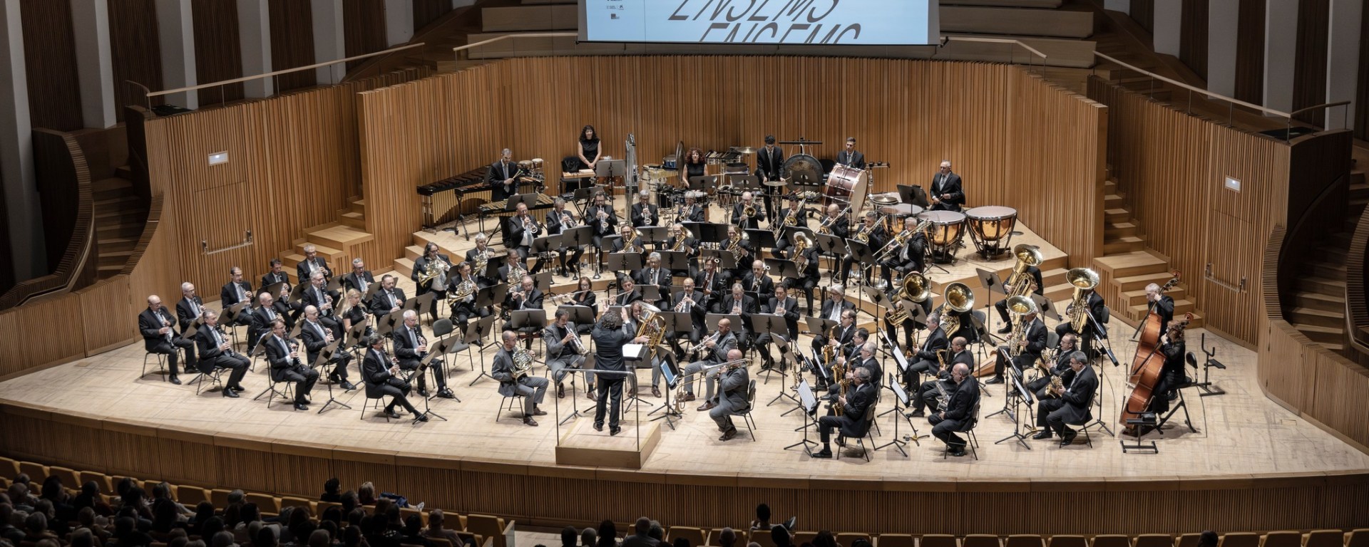 L’altra obra de recent creació era Notes a peu de pàgina, de Marc García Vitoria. Cal recordar que esta peça es va estrenar fa exactament dos anys a càrrec de la Banda Municipal de Castelló a l’Ensems del 2023, amb un resultat no massa ajustat, tal i com recorda la ressenya que vam fer en el seu moment. En esta ocasió, el propi compositor va explicar prèviament que escoltaríem l’estrena de la revisió de l’obra de l’any 2025. El resultat va ser fantàstic, amb una Banda Municipal de València a l’altura de les exigències tímbriques de la peça, oferint un paisatge sonor d’una molt cuidada orquestració. Un dels elements més interessants de l’obra és la successió d’espurnes sonores que van desencadenant reaccions a través de les diferents seccions de la banda, construint un discurs força coherent al llarg dels seus nou moviments. Menció especial mereix l’onomatopeia d’ànec que vertebrava tota la peça, i que va concloure a les mans del propi director, amb una pilota de plàstic d’aquelles que fan un sorollet quan se les apreta. Sense dubte, esta interpretació de Notes a peu de pàgina va deixar un molt millor sabor de boca que la duta a terme fa dos anys.