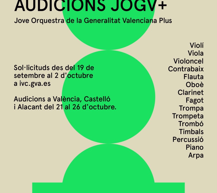 Després de passar la primera fase, els preseleccionats estan convocats a les audicions per a 51 llocs de músics d’orquestra per a les produccions líriques de la temporada 2024-2025. La JOGV+ és una nova plataforma de formació i professionalització que sorgix com a evolució natural del projecte de la Jove Orquestra de la Generalitat. L’Institut Valencià de Cultura ha publicat la llista d’aspirants que han … Continúa leyendo L’Institut Valencià de Cultura celebra les audicions per a la nova Jove Orquestra de la Generalitat Plus